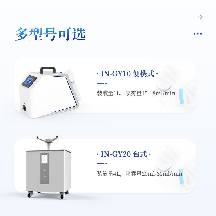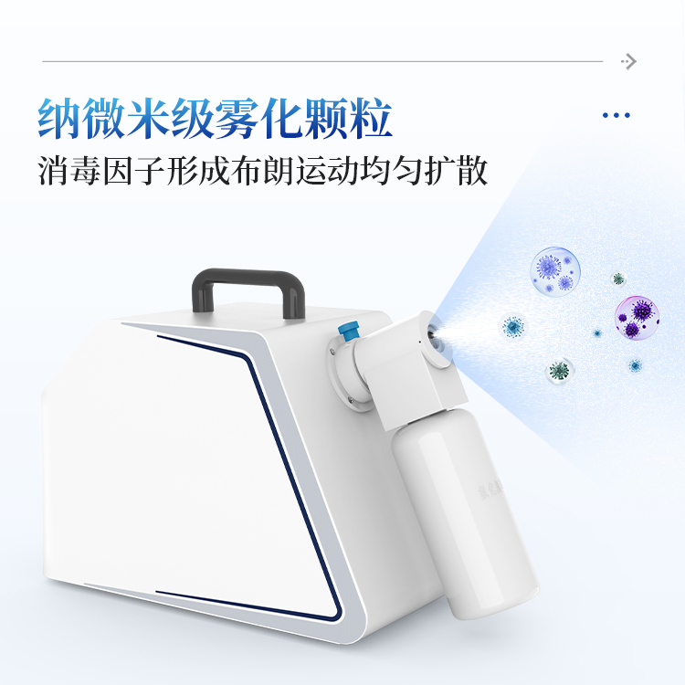 消毒体积和时间范围:无阻碍密闭空间消毒体积20-100 m3;喷雾时间为60min